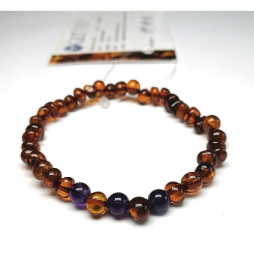 GLT Sertifikalı Baltık Damla Kehribar ve Ametist Yetişkin Bileklik