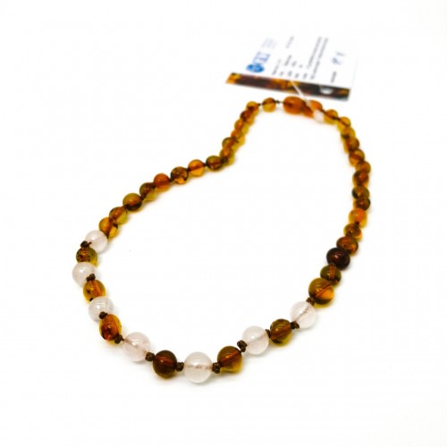 GLT Sertifikalı Damla Bal Kehribar Rose Quartz Bebek Kolye