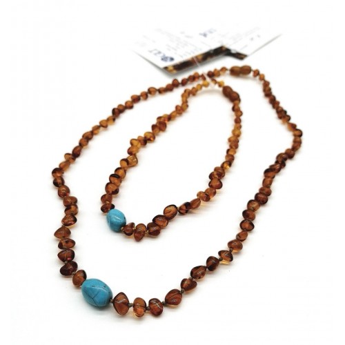GLT Sertifikalı Damla Bal,Turkuaz Kehribar Anne-4 Yaş Üzeri Çocuk Kolye Seti