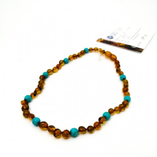 GLT Sertifikalı Damla Kehribar Bal Turkuaz Çocuk Kolye