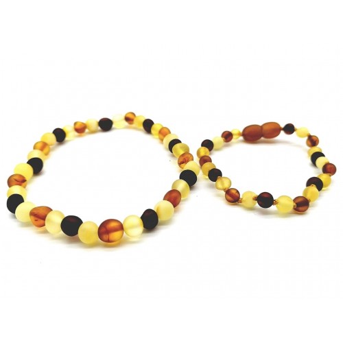 GLT Sertifikalı Damla Kehribar Karışık Mat Yetişkin - Çocuk Bileklik Seti
