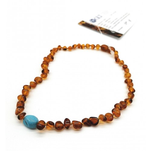 GLT Sertifikalı Damla Kehribar Koyu Bal Turkuaz 4 Yaş Üzeri Çocuk Kolye
