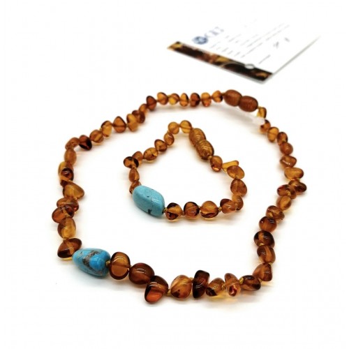 GLT Sertifikalı Damla Kehribar Turkuaz Bal Bebek Kolye Bileklik Seti
